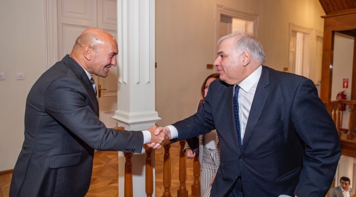 ?zmir Büyük?ehir Belediye Ba?kan? Tunç Soyer, Yunanistan’?n Ankara Büyükelçisi Christodoulos J. Lazaris ve Yunanistan ?zmir Ba?konsolosu Despoina Balkiza’y? a??rlad?. Ülkeler ve ?ehirler aras?nda kurulacak kültürel ve ticari ili?kilerin ele al?nd??? görü?mede Ba?kan Tunç Soyer, Yunanistan ile çok yak?n ili?kiler geli?tirmek istediklerini ifade ederek “Kültürümüz ve ya?am tarz?m?z aras?ndaki benzerlik göz ard? edilemez. Kentlerimiz aras? i?birliklerini geli?tirmek için bar???, dostlu?u yerelde güçlendirebiliriz” dedi.