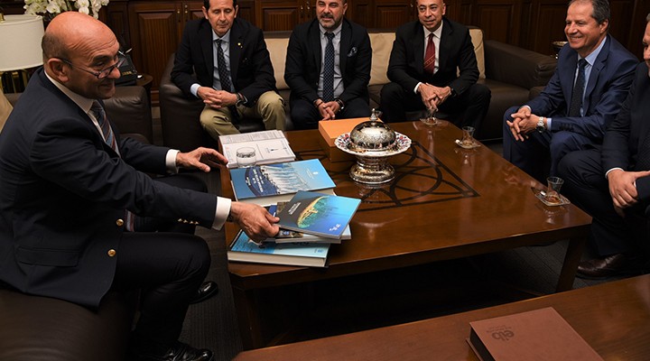 ?MEAK Deniz Ticaret Odas? ?zmir ?ubesi Meclis Ba?kan? Kenan Yalavaç, Yönetim Kurulu Ba?kan? Yusuf Öztürk, Ba?kan Yard?mc?s? Mihri Çelik, Yönetim Kurulu Üyeleri Argun Gündüç ve Hakk? Deniz ile ?ube Müdürü Halil Hatipo?lu, Büyük?ehir Belediye Ba?kan? Tunç Soyer’e hay?rl? olsun ziyaretinde bulundu. Ziyarette Ba?kan Soyer’e ?zmir denizcilik projeleri ile ilgili haz?rlanan dosya ve ?MEAK DTO ?zmir ?ubesi taraf?ndan yay?nlanan denizcilik kitaplar? takdim edildi.