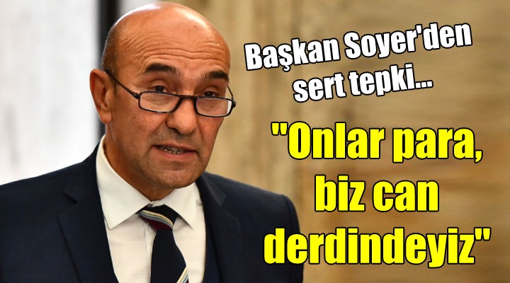 ?zmir Büyük?ehir Belediye Ba?kan? Tunç Soyer, Cumhurba?kan? Erdo?an taraf?ndan ba??? kampanyas? ba?lat?lmas?n?n ard?ndan belediyelerin yard?m toplamas?n?n engellenmesine tepki gösterdi. Sözcü TV'nin yay?n?na kat?lan Ba?kan Soyer, "Onlar para, biz can derdindeyiz. Diyecek bir ?ey bulam?yorum. Nereden tutsan elimde kal?yor. Neresinden baksam yanl??l??? bütün ç?plakl???yla gözüküyor. Bir gün bunlar hat?rlanacak. Bunu uzatmak istemiyorum ama ak?l d???.. ?lerde bunun utanc?n?n ya?anaca?? ama hesab?n?n sorulaca?? bir noktaya gelindi. Bunlar?n bir gün hesab? sorulacak. Siz vatanda??n?za yard?m etmek istiyorsunuz, kampanya açmak istiyorsunuz. Hop dur! Para toplayamazs?n! Ee sen topluyorsun?" dedi.