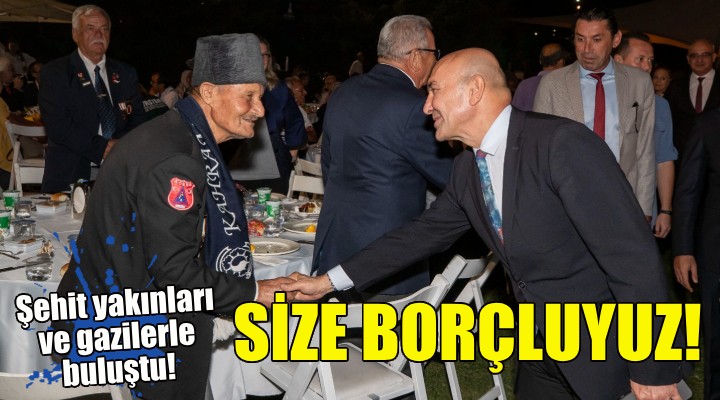 Gaziler Günü nedeniyle düzenlenen programda ?ehit aileleri ve gazilerle bulu?an Ba?kan Tunç Soyer, “Vatan? için bu kadar fedakârl??? göze alm?? ba?ka bir millet yok. Bizler bu topraklarda e?er çocuklar?m?z, torunlar?m?z, kom?umuz ve akrabalar?m?zla huzur içinde ya??yorsak bunu size borçluyuz” dedi.