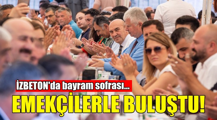 ?ZBETON Genel Müdürlü?ü’nün Belkahve Tesisleri’ndeki bayramla?ma törenine kat?lan ?zmir Büyük?ehir Belediye Ba?kan? Tunç Soyer, i?çilerle bayram yeme?i yedi. Soyer’e ?zmir Büyük?ehir Belediyesi Ba?kan Vekili Mustafa Özuslu, Genel Sekreter Bar?? Karc? ve ?ZBETON Genel Müdürü Heval Sava? Kaya e?lik etti.