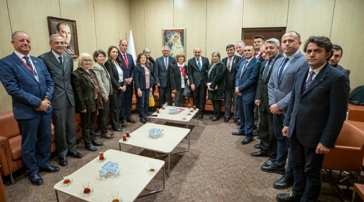 ?zmir’deki ?ehit ve gazi derneklerinin temsilcileri,18 Mart ?ehitleri Anma Günü ve Çanakkale Zaferi’nin 108’inci y?ldönümü nedeniyle ?zmir Büyük?ehir Belediye Ba?kan? Tunç Soyer’i ziyaret etti. Ba?kan Tunç Soyer, ?ehit ve gazi derneklerinin temsilcilerini ?kinci Yüzy?l?n ?ktisat Kongresi’nin sürdü?ü Ahmet Adnan Saygun Sanat Merkezi’nde (AASSM) a??rlad?.