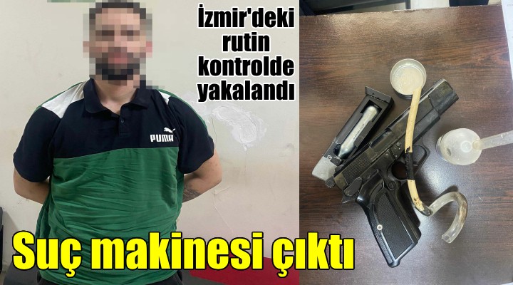 Bornova ilçesinde polis ekiplerinin ?üphe üzerine durdurdu?u iki ki?inin yap?lan GBT (Genel Bilgi Tarama) sorgulamas?nda Y.A.'n?n 14 ayr? h?rs?zl?k suçundan aranmas? oldu?u belirlendi. ?üpheli Y.A.'n?n yap?lan üst aramas?nda; tabanca, 11 gram metamfetamin ile uyu?turucu düzene?i bulundu. ?üpheli Y.A.'n?n emniyetteki i?lemleri devam ediyor.