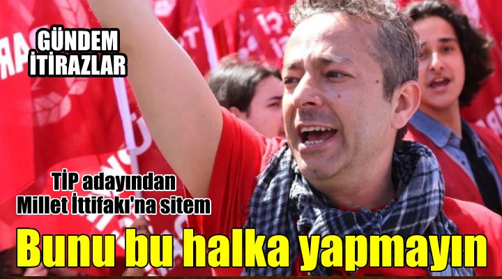 SONKALE?ZM?R- Sosyal medya hesab?ndan bir aç?klama yapan T?P ?zmir Milletvekili Aday? ?rfan De?irmenci, "?zmir'de T?P olarak sand?k sonuçlar?na itirazlar?m?za CHP üyeleri hariç tüm di?er parti üyelerinden red geliyor ve buna Millet ittifak?n?n di?er partileri de dahil!! Bunu bu halka yapmay?n" ifadelerini kulland?.