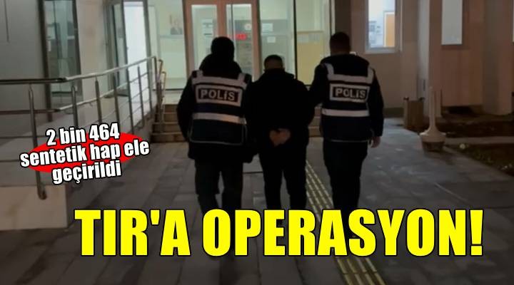 Bornova Suç Önleme ve Soru?turma Büro Amirli?i ekipleri, bir TIR'a operasyon düzenledi. TIR'da yap?lan aramada 176 tablet halinde toplam 2 bin 464 sentetik hap ele geçirildi. ?üpheli Y.Ç. gözalt?na al?nd?. Polisteki i?lemlerinin ard?ndan adliyeye sevk edilen Y.Ç., ç?kar?ld??? mahkemede tutukland?.