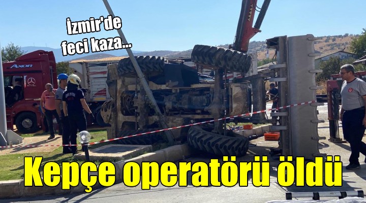 Kaza bugün saat 14.30 s?ralar?nda Tire- Torbal? karayolu k?rsal Karateke Mahallesi yak?nlar?nda meydana geldi. Yolun solundaki akaryak?t istasyonuna girmek için dönü? yapan kepçeye arkadan gelen Muhammet A. (34) yönetimindeki 35 BDM 422 plakal? bu?day yüklü TIR çarpt?. Çarpman?n ?iddetiyle kepçe devrilirken, çevredekiler 112 Acil Ça?r? Merkezine haber verdi. Olay yerine jandarma, itfaiye ve sa?l?k ekibi sevk edildi. Sa?l?k görevlisinin yapt??? kontrolde kepçe operatörü Ramazan Nas'?n hayat?n? kaybetti?i belirlendi. Nas'?n cans?z bedeni jandarma ve savc?n?n olay yerindeki incelemelerinin ard?ndan Tire Devlet Hastanesi morguna kald?r?ld?. Kazay? yaralanmadan atlatan TIR ?öförü Muhammet A. ise gözalt?na al?nd?.