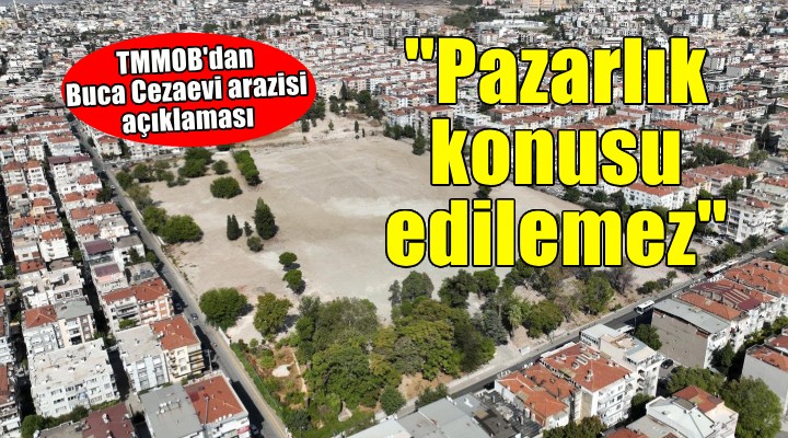 TMMOB ?zmir ?l Koordinasyon Kurulu, mülkiyeti ?ller Bankas?'na ait Buca Cezaevi arazisi ile ilgili aç?klama yapt?. Aç?klamada; ?zmir Büyük?ehir Belediye Ba?kan? Cemil Tugay'?n arazinin "Yüzde 65’inin ye?il alan, metro istasyonu, oyun ve spor alan?, yüzde 35’inin ise ?ller Bankas?’n?n proje alan? olarak kullan?lmas?" teklifine tepki gösterilirken, "Buca Cezaevi alan? kamuya aittir. Pazarl?k konusu edilemez" denildi.