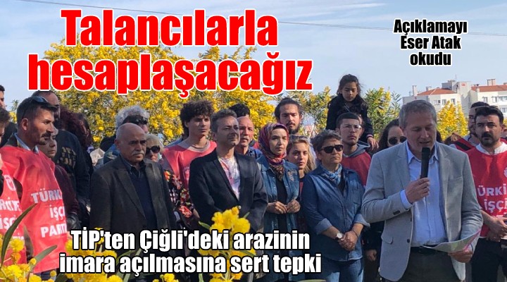 SONKALE?ZM?R- Cumhurba?kanl??? kararnamesi ile yap?la?maya aç?lma karar? al?nan Çi?li Küçükçi?li Mahallesi'ndeki arazi üzerinde toplanan T?P'liler, tepkilerini dile getirdi. T?P ?zmir ?l Örgütü'nün düzenledi?i bas?n aç?klamas?na partinin milletvekili adaylar? Eser Atak ve ?rfan De?irmenci'nin yan? s?ra çok say?da partili ve yurtta? da destek verdi. T?P'liler sloganlar atarak, sosyal tesis alan?n?n çok katl? yap?la?maya aç?lmas?na tepki gösterdi.