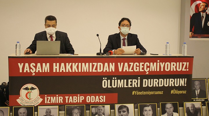 "?ktidar? bir kere daha uyar?yoruz: Geç kald?n?z, önlenebilir ölümleri önlemediniz! Bilim insanlar? yay?n üretme konusunda Bakanl???n çizdi?i çerçevenin d???na ç?kmal?d?r. Hekimlerin meslek örgütü TTB bilimsel sorumlulu?u almaya haz?rd?r. Topluma ça?r?m?zd?r: Sosyal haklar?m?z?n korunmas?; temel g?da, su, ?s?nma, bar?nma, temizlik ihtiyaçlar?n?z?n kar??lanmas? salg?nla mücadelede iktidar?n görevidir. Ekonomik ç?karlar için sa?l???m?z? hiçe atarak çal??t?r?ld???m?z i? yeri ortamlar?na gitmemeyi talep etmek en do?al sa?l?k hakk? talebimizdir. Uyar?lar?m?za ra?men yanl?? sa?l?k politikalar?nda ?srar edilmesi, sosyal cinayettir. Toplumun ve sa?l?k çal??anlar?n?n can?n? ve sa?l???n? riske atan vurdumduymazl??a daha fazla tahammülümüz kalmam??t?r. Siyasi ve ekonomik ç?karlar? de?il insan? önceleyin! Art?k tükendik, söylenecek sözümüzü tükettik. Ç??l???m?zla buraday?z! Bu ç??l?k hepimizin!"