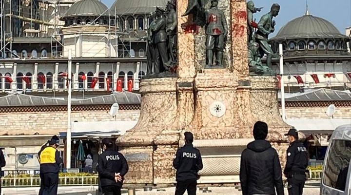 ?stanbul'un simgelerinden Taksim Meydan?'ndaki Cumhuriyet An?t?'na k?rm?z? boya at?ld??? görüldü. Polis an?t?n çevresinde inceleme ba?latt?. Beyo?lu Kaymakaml??? sald?r?ra ili?kin sosyal medya üzerinden aç?klamada bulundu. Aç?klamada an?ta yaz? yazan ki?inin yüzde 50 engelli M.B isimli bir ki?i oldu?u ve yakaland??? ifade edildi.