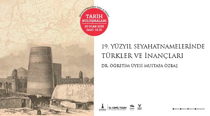 ?zmir Büyük?ehir Belediyesi Kent Ar?ivi ve Müzeler ?ube Müdürlü?ü’nün, Tarih Vakf? ile birlikte AP?KAM’da gerçekle?tirdi?i "Tarih Bulu?malar?" kapsam?nda her ay bir akademisyen siyasetten kültüre, sanattan toplumsal olaylara birçok farkl? konuda ?zmirlilerle bulu?maya devam ediyor. Söyle?i dizisinin bu ayki konu?u ise Dokuz Eylül Üniversitesi Buca E?itim Fakültesi Türkçe ve Sosyal Bilimler E?itimi Bölümü Ö?retim Üyesi Dr. Mustafa Özba? olacak. Özba?’?n "19. Yüzy?l Seyahatnamelerinde Türkler ve ?nançlar?" adl? söyle?isi, 23 Ocak Per?embe günü saat 18.30’da düzenlenecek. Söyle?ide; ?ngiliz seyyahlar?n 19. yüzy?lda yay?mlanan seyahatnamelerinde aktard??? bilgiler ?????nda, Türklerin söz konusu dönem ve co?rafyalardaki kültürel özellikleri ve inançlar? kapsaml? bir ?ekilde ele al?nacak.