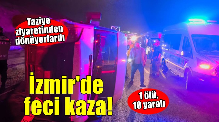Otoyolda 1 ki?inin ya?am?n? yitirdi?i, 10 ki?inin de yaraland??? trafik kazas?nda araçta bulunanlar?n Tekirda?'da bir taziye ziyaretinde bulunduktan sonra ?zmir’e dönmek üzere yola ç?kt?klar? ö?renildi. Bu arada kaza nedeniyle otoyolda da araç yo?unlu?u olu?tu. Minibüs çekilip, yol temizlendikten sonra trafik ak??? normale döndü. Kazayla ilgili ba?lat?lan soru?turma sürüyor.