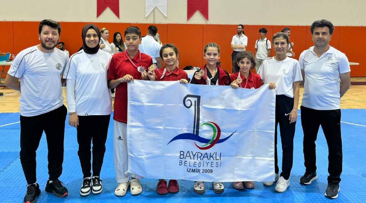 Menemen Spor Salonu’nda düzenlenen ?zmir Taekwondo ?l ?ampiyonas?’nda Bayrakl? Belediyesi Spor Kulübü sporcular? elde ettikleri 11 dereceyle ?ampiyonan?n y?ld?z? oldu. ?zmir’?n en yetenekli genç tekvandocular?n?n bir araya geldi?i turnuvaya 47 kulüpten, 373 sporcu kat?ld?. Bayrakl? Belediyesi sporcular?ndan Yasin Örnek, Ege Kovanl?k, Feyzasu Sar?kaya, Nil Yaz?c?, Ecemsu Ayd?n birinci olurken, Bu?lem Selçuk, Ay?e ?rem Kurt, Y.Bertan Turul ikincilik madalyalar?n?n sahibi oldu. Elif Naz Çoban, Ba?ak Kara, Hamza Öztep ise ald?klar? üçüncülük dereceleriyle kulübün ba?ar?lar?n? büyüttü. Bayrakl? Belediyesi, genel klasmanda kazand??? toplam 11 madalya ile en çok derece alan tak?m olarak ?ampiyonay? tamamlad?.