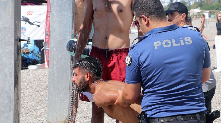 Di?er yandan kelepçelenen ?üphelilerden biri, biber gaz?ndan etkilendi?ini ve nefes darl??? oldu?unu söylemesi üzerine bir polis memuru taraf?ndan sahildeki du? noktas?na götürüldü.
