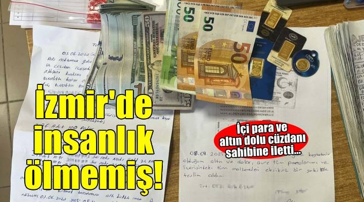 ?zmir ?ehirleraras? Otobüs Terminali'nin tuvaletinde temizlik i?çisi olarak çal??an C.A., tuvalette dü?ürülen bir cüzdan? buldu. C.A., içinde alt?n ve para bulunan cüzdan? Bornova ?lçe Emniyet Müdürlü?ü ekiplerine teslim etti. Yap?lan ara?t?rmada cüzdan?n M.S.'ye ait oldu?u belirlendi. 400 bin lira de?erinde döviz ve alt?n bulunan cüzdan, M.S.'ye teslim edildi.