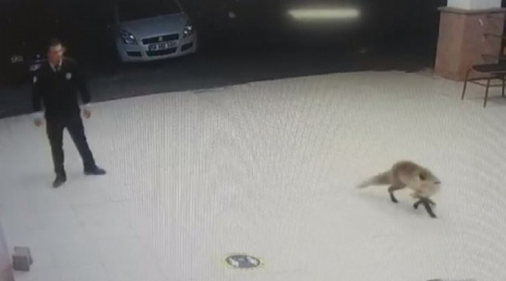 Sivas kent merkezinde bir kamu kurumunda güvenlik görevlisi, yiyecek bulmak için güvenlik kulübesine gelen tilkiyi elleriyle besledi. Güvenlik görevlisi, karn?n? doyurdu?u tilkiyle bir sürede otomobilinin anahtarlar?yla oyalad?. Tilki, telefon kameras?n?n kay?tta oldu?u anda anahtarlar? alarak kaçmaya ba?lad?. Bu anlar cep telefonu kameras?na yans?d?.