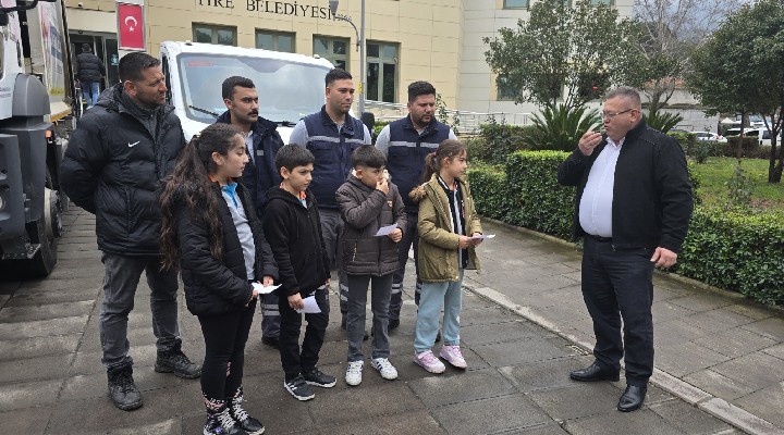Çevre temizli?i konusunu i?leyen Kurtulu? ?lkokulu ö?rencileri, Tire Belediyesi’ni ziyaret etti. Ö?rencileri, belediye binas? önünde a??rlayan Tire Belediyesi Temizlik ??leri Müdürü Fatih Alt?n, ö?rencilerin sorular?n? yan?tlad?.