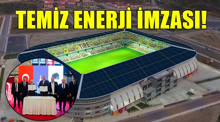 Tire Gazi Mustafa Kemal Atatürk Stadyumu’nun çat?s?na yap?lacak GES projesinin sözle?mesi imzaland?. Proje “Kamu Enerji Performans Sözle?mesi” kapsam?ndaki ilk uygulama olacak. Ba?kan Soyer, 2030 y?l?na kadar ?zmir’de sera gaz?n? s?f?ra indirmeyi hedeflediklerini belirterek “?zmir’de kurdu?umuz GES’ler sayesinde elektrik enerjisi üretiminde yüzde 540 gibi rekor bir oranda art??? sa?lad?k. Bu çal??ma ile Tire Belediyemiz y?ll?k elektrik enerjisi ihtiyac?n?n yüzde 50’sini kar??layacak" dedi.