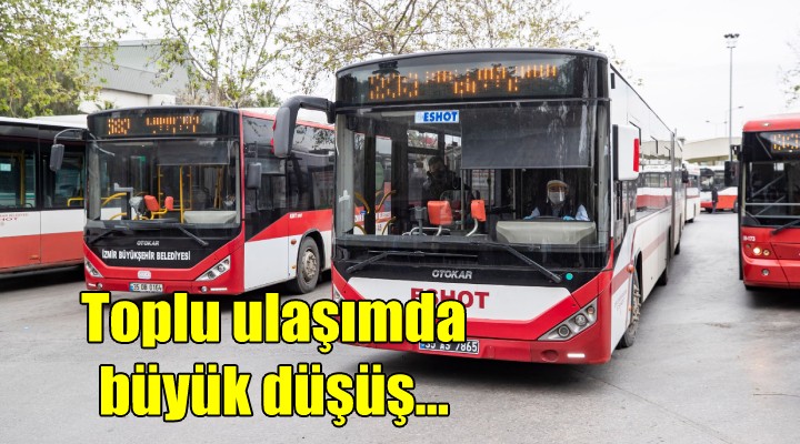 Tüm bini?lerin yüzde 65’e yak?n?n? kar??layan lastikli ula??mda, 6 Nisan Pazartesi günü itibariyle ESHOT ve ?ZULA? otobüslerinin kullan?m say?s? da 2 Mart Pazartesi gününe göre yüzde 82 oran?nda dü?tü.