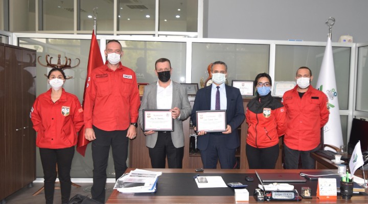 2013 y?l?nda AKUT’a e?itim ve tatbikat çal??malar? yapabilmeleri için Pancar’da, belediyeye ait olan 400 metrekarelik bir merkezi üs olarak tahsis eden Torbal? Belediyesi, ?zmir depreminde de AKUT’a teçhizat, istihkam malzemeleri, yak?t, ula??m ve ki?isel ihtiyaçlar?n? gidermeleri ve konaklamalar? için otel temin etmi?ti. Torbal? Belediyesi’nin deste?ini deprem boyunca omuzlar?nda hissettiklerini ifade eden AKUT ?zmir Ekip Lideri Ramazan Ergut, Torbal? Belediye Ba?kan Yard?mc?s? Ali Yakupo?lu ve Kültür Sosyal ??ler Müdürü Serkan Tekin’e ‘Te?ekkür Belgeleri’ takdim etti.Ergut ayr?ca, Torbal? Belediye Ba?kan? ?smail Uygur için de haz?rlatt?klar? belgeyi, Tekin’e takdim etti.