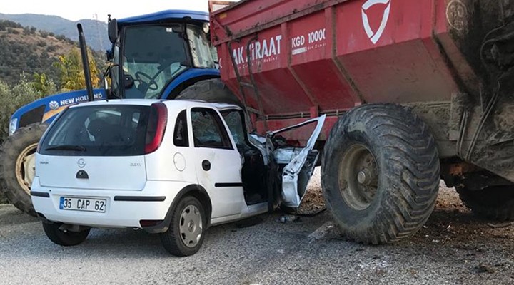 Ahmet Türkön yönetimindeki 35 ADH 906 plakal? römork tak?l? traktör, Ödemi? Beyda? kara yolunda Alperen Mehmet Sar?kaya idaresindeki 35 CAP 62 plakal? otomobille çarp??t?.