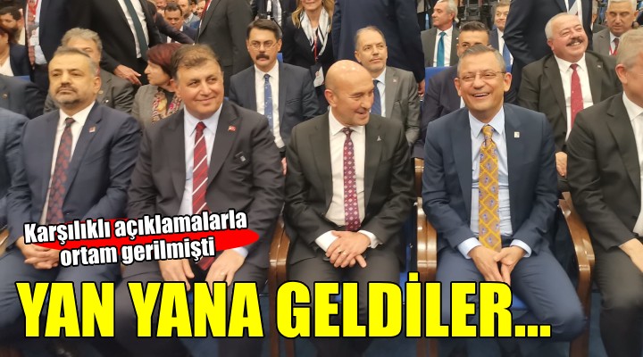 SONKALE?ZM?R-?zmir Ticaret Odas?'nda CHP Genel Ba?kan? Özgür Özel'in kat?l?m?yla düzenlenen ?zmir ?? Dünyas? Bulu?mas?'nda ?zmir Büyük?ehir Belediye Ba?kan? Tunç Soyer ile CHP'nin Büyük?ehir aday? Cemil Tugay yan yana geldi.