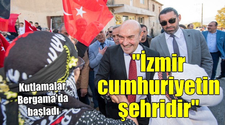 ?zmir Büyük?ehir Belediyesi’nin 29 Ekim Cumhuriyet Bayram? için üç gün üç gece sürecek etkinlik dizisinin ilk adresi Bergama’n?n Zeytinda? köyü oldu. Köyde Cumhuriyet korteji olu?turuldu. Yürüyü?e ?zmir Büyük?ehir Belediye Ba?kan? Tunç Soyer de kat?ld?.