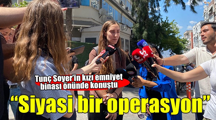 SONKALEİZMİR-Eski İzmir Büyükşehir Belediye Başkanı Tunç Soyer'in ifade sürecini takip etmek üzere İzmir Emniyet Müdürlüğü önünde gelen kızı Defne Soyer durumla ilgili açıklama yaptı.