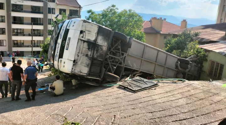 Geriye do?ru kayan ve kontrolden ç?kan tur otobüsü, bir evin bahçesine devrildi.