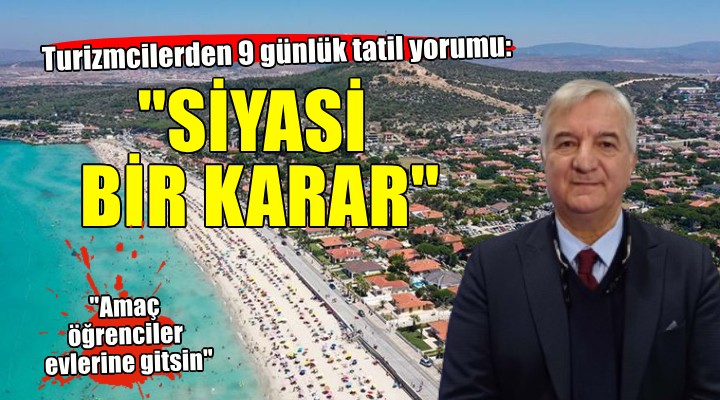 Ekrem ?mamo?lu'nun tutuklanmas? sonras? ya?anan sürece gönderme yapan Mehmet ??ler, “9 günlük tatil siyasi bir karar. Sektör ile ilgisi yok. Protestolar için es verilsin diye al?nm?? bir karar. Sektör için dü?ünülmü? olsa 15-20 gün önce al?n?rd?. Ö?renciler ailelerine gitsin. Devlet memurlar? vesaire tatile gitsin. As?l amaç bu” dedi.