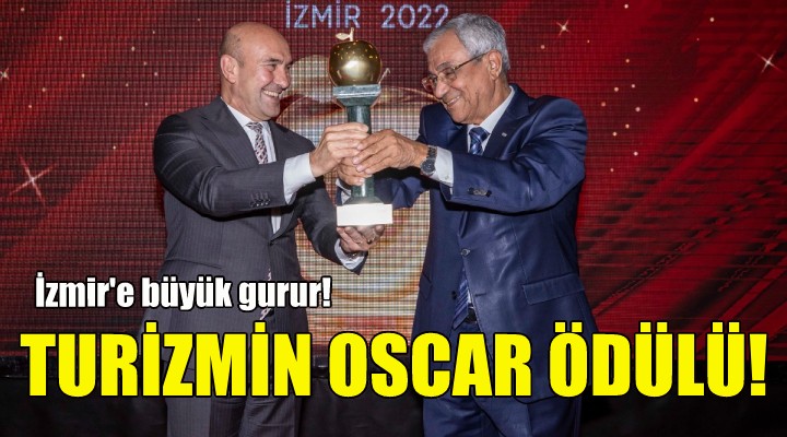 Uluslararas? Turizm Gazetecileri ve Yazarlar? Federasyonu (F?JET), “Dünya Turizm Oscar”? olarak an?lan “Alt?n Elma Ödülü”nü bu y?l kentin tarihi ve kültürel de?erlerini koruyarak turizm faaliyetlerini destekleyen ?zmir Büyük?ehir Belediyesi’ne verdi. ?zmir Büyük?ehir Belediye Ba?kan? Tunç Soyer, ödülü Dünya Turizm Gazetecileri ve Yazarlar? Federasyonu Ba?kan? Tijani Haddad'?n elinden ald?.