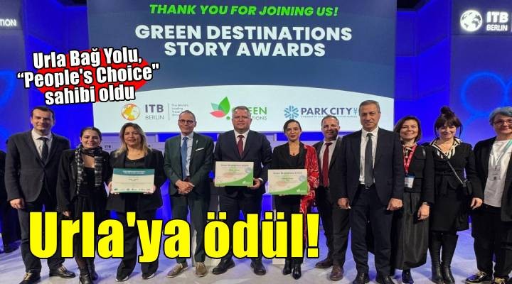 2025 ITB Berlin Turizm Fuar?nda gerçekle?en “Green Destinations Story Awards” kapsam?nda en iyi 100 Hikâye aras?nda yer alan destinasyonlar aras?nda yap?lan halk oylamas? ile Urla Ba? Yolu, “Urla'n?n ?arap Miras?n? Ke?fetmek: Urla Ba? Yolu’nun Do?u?u” hikâyesiyle, “People's Choice” ödülünü kazand?. Green Destinations özel kategori ödülü olan “Halk?n Seçimi Ödülü”, 13-25 Ocak 2025 tarihleri aras?nda yap?lan anket uygulamas?nda kullan?lan 140 bin oydan, Urla Ba? Yolu en çok oyu alarak en iyi destinasyon seçildi.