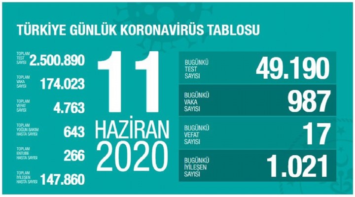 Son 24 saatte 1021 ki?inin daha iyile?mesiyle Kovid-19 tedavisi tamamlananlar?n say?s? 147 bin 860 oldu.