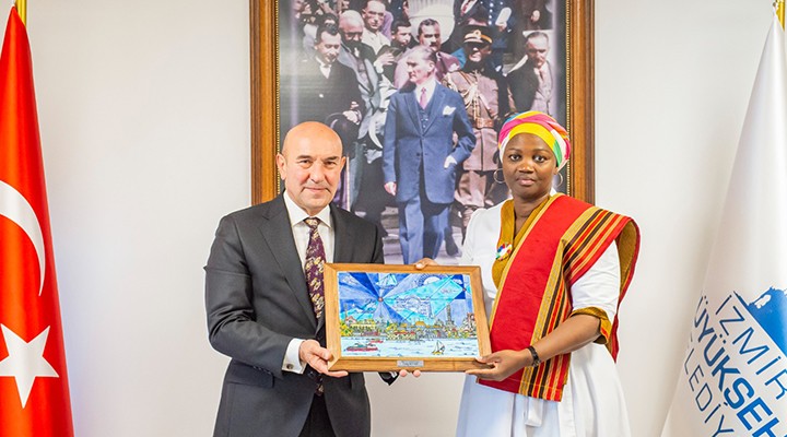 Uganda’n?n Ankara Büyükelçisi Nusura Tiperu, ?zmir ile Uganda aras?nda i?birli?i olanaklar?n?n geli?tirilmesi için ?zmir Büyük?ehir Belediye Ba?kan? Tunç Soyer'i ziyaret etti. Fuar ?zmir'deki ba?kanl?k ofisinde yap?lan görü?mede Nusura Tiperu, Uganda ve ?zmir aras?nda ba? kurulmas?n?n önemine de?indi. Büyük?ehir belediye ba?kanlar?n?n kar??l?kl? ziyaretlerinin de etkili olaca??n? ifade eden Büyükelçi, bölgedeki Türk yat?r?mlar?n? anlatt?.
