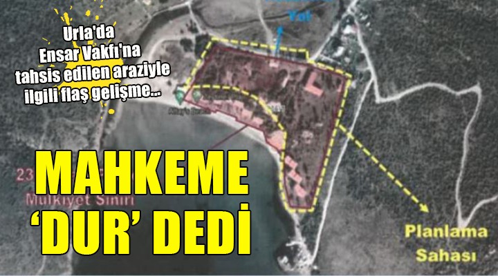 SONKALE?ZM?R-TMMOB Mimarlar Odas? ?zmir ?ubesi ve TMMOB ?ehir Planc?lar? Odas? ?zmir ?ubesi, Urla-Zeytineli Koyu’nda yer alan ve Ensar Vakf?’na 49 y?ll???na tahsis edilen 3’üncü derece do?al S?T alan?ndaki tesislerin ‘e?itim merkezi ve ö?renci yurdu’ çevrilmesini yarg?ya ta??m??t?. Yap?lan itiraz? de?erlendiren ?zmir 5. ?dare Mahkamesi, Çevre, ?ehircilik ve ?klim De?i?ikli?i Bakanl???’n?n Hazine'den al?n?p Ensar Vakf?'na verilen Zeytineli'ndeki 236 ada 1 No'u parsele ili?kin yapt??? plan de?i?ikliklerinin yürütmesini durdurdu. Mahkeme, plan de?i?ikli?inin "telafisi güç zararlar do?urabilece?ine" i?aret etti.
