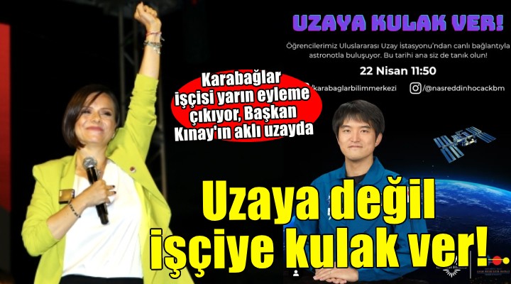 ??çiler geçim derdiyle eylem yapmaya haz?rlan?rken ak?am saatlerinden Belediye Ba?kan? Helil ?nay K?nay'dan uzay payla??m? geldi. K?nay, “Uzaya kulak ver” payla??m?n? yapt?.