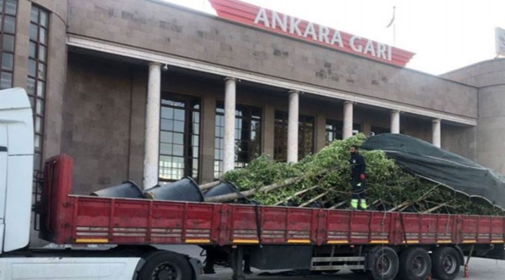 Ankara Büyük?ehir Belediyesi’nin 9 Ekim’de Ankara Gar? önüne, 10 Ekim Ankara Katliam? y?ldönümü için yerle?tirdi?i Mabet A?aç fidanlar? Ankara Valili?i’nce kald?r?ld?.
