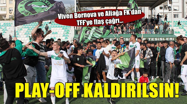 Play-Off'ta birbirlerine rakip olan Viven Bornova ile Alia?a FK yöneticileri, henüz Play-Off maç takvimi belirlenmeden müsabakalar?n iptal edilmesini ve 12 tak?m?n da 3. Lig'e al?nmas?n? istiyor.