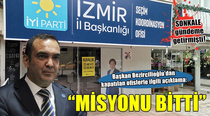 SONKALE'nin gündeme getirdi?i "?Y? Parti ?zmir ?l Ba?kanl???'n?n baz? seçim koordinasyon ofislerini kapatt???" haberinin ard?ndan ?Y? Parti ?zmir ?l Ba?kan? Sinan Bezircilio?lu'dan aç?klama geldi.
