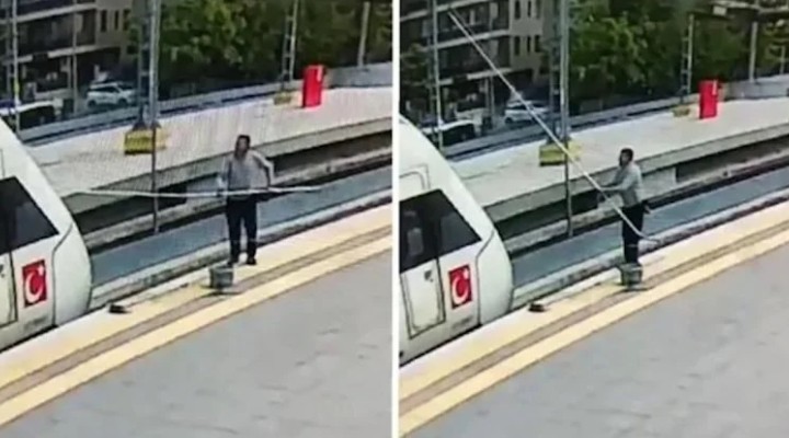 ?stanbul Sö?ütlüçe?me ?stasyonu’nda Yüksek H?zl? Tren (YHT) setinin makinist kabini ön pencere cam?n? uzun sapl? f?rça ile temizli?ini yapan bir i?çi yüksek gerilime kap?ld?.
