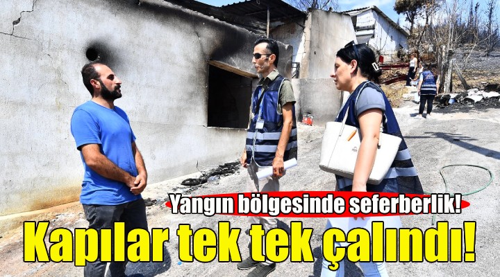 ?zmir Büyük?ehir Belediyesi, Yamanlar Da?? ve kentin birçok noktas?nda ç?kan yang?nlar?n ard?ndan yaralar? sarmak amac?yla harekete geçti. Ola?anüstü meclis toplant?s?yla ma?dur vatanda?lara nakdi, ayni, lojistik ve be?eri yard?mlar?n sa?lanmas? için özel komisyon karar?n?n ard?ndan Büyük?ehir Belediyesi ekipleri sahaya indi. ?zmir Büyük?ehir Belediye Ba?kan? Dr. Cemil Tugay’?n sorunlar?n çözümü için harekete geçirdi?i ekipler kap? kap? dola?arak sosyal tespit çal??mas? ve inceleme yapt?.