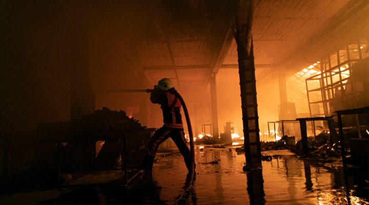 Mersin Sanayi Sitesi’nde, dün ak?am saatlerinde, mobilya fabrikas?nda ç?kan yang?na itfaiye ekiplerinin müdahalesi s?ras?nda tavan çöktü.