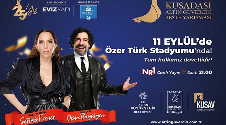 Ayd?n Büyük?ehir Belediyesi, Ku?adas? Belediyesi ve Ku?adas? Alt?n Güvercin Kültür Sanat ve Tan?t?m Vakf? (KUSAV) i? birli?iyle, Eviz Yap? ana sponsorlu?unda düzenlenen, NR1 Türk TV ve Number 1 Türk FM’den canl? olarak yay?nlanacak olan Alt?n Güvercin Beste Yar??mas? bu y?l 25’inci kez düzenlenecek. Çeyrek as?rl?k yolculu?u boyunca besteci ve yorumcular taraf?ndan yak?ndan takip edilen ve büyük ilgiyle kar??lanan Alt?n Güvercin, düzenlendi?i y?llar boyunca Türk pop müzi?ine pek çok de?erli isim ve beste kazand?rd?.