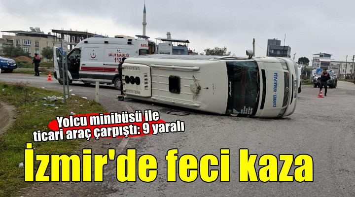 Olay saat 17.30 s?ralar?nda Kemalpa?a ilçesi Sütçüler Mahallesi ?zmir-?stanbul Otoban? yan yolda meydana geldi. Akevler Caddesi istikametinden gelen H.Y. (65) yönetimindeki 35 PGH 24 plakal? yolcu minibüsü, ?zmir- ?stanbul Otoyolu yan yolu yönünden gelen M.E.Y. (22) idaresindeki 35 CIE 319 plakal? hafif ticari araçla çarp??t?. Çarp??man?n etkisiyle minibüs kontrolden ç?karak devrildi. Kazada minibüs ?oförü H.Y. ve yolcular D.K., F.D., ?.B., B.M.Y., ?.C., M.Ö, F.G. ile hafif ticari araçta yolcu olarak bulunan A.K. yaraland?.