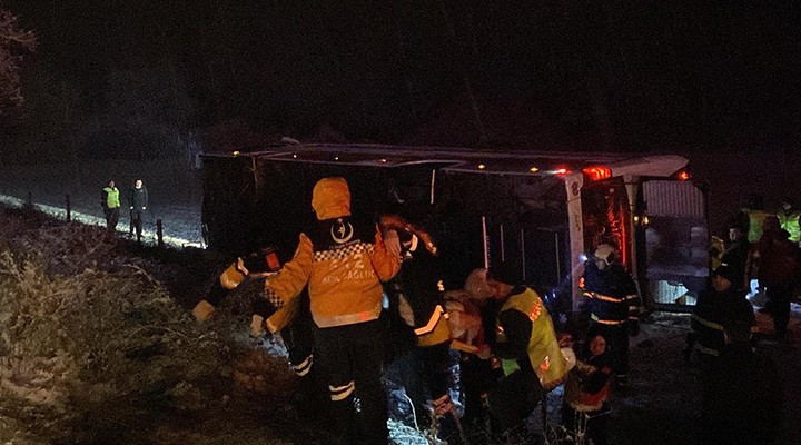 Yaral?lar hastanelere kald?r?larak tedaviye al?nd?. Otobüsün i? makineleri ile kald?r?lmas? için çal??malar sürüyor.