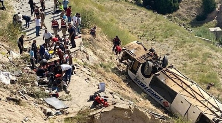 Ekipler, yakla??k 50 metre yükseklikten dü?en otobüsteki yaral?lar? ç?karmak için çal??ma yürütüyor.