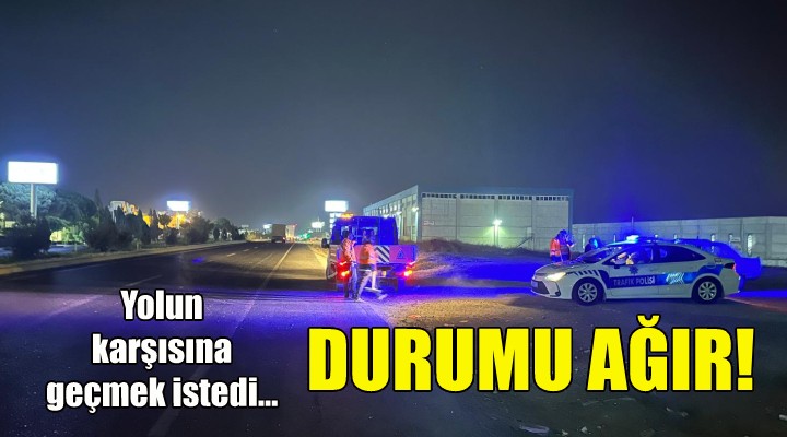 Kaza, Kemalpa?a ilçesi Kuyucak mevkisinde meydana geldi. ?ddiaya göre, H.Ö. (35) yönetimindeki 15 DE 1369 plakal? otomobil, yolun kar??s?na geçmek isteyen Salim Y.'ye çarpt?. Çarpman?n etkisiyle metrelerce sürüklenen Salim Y. a??r yaralan?rken, çevredeki vatanda?lar durumu sa?l?k ekiplerine bildirdi.