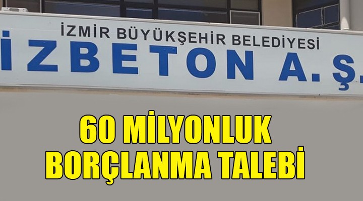 SONKALE?ZM?R-?zmir Büyük?ehir Belediyesi'nin Haziran ay? meclis toplant?s?nda ?ZBETON'un 60 milyon TL borçlanma talebi oylanacak. ?ZBETON'un çal??malarda kullanmak üzere talep edilen borçlanma için Ba?kan Tunç Soyer'e yetki verilmesi istenecek. Borçlanma ile ilgili önerge ?u ?ekilde:
