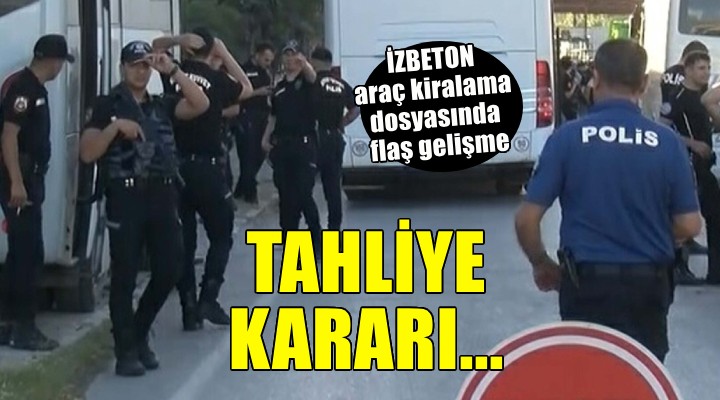 Dosyay? kabul eden ?zmir 17'nci Asliye Mahkemesi, tutuklu san?klar?n adli kontrol ?art?yla tahliyelerine karar verdi. Önce asfalt, ard?ndan da bu dosyadan hakk?nda tahliye karar? verilen eski ?ZBETON Genel Müdürü Heval Sava? Kaya'n?n ise kooperatif dosyas?nda ?üpheli olarak yer ald??? için cezaevinden tahliye edilmeyece?i ö?renildi. Buca Belediye Ba?kan Yard?mc?s? Engin Güzel ve Bayrakl? Belediye Ba?kan Yard?mc?s? Mehmet Mert Hanifi Y?lmaz'?n ise tahliye olaca?? belirtildi.