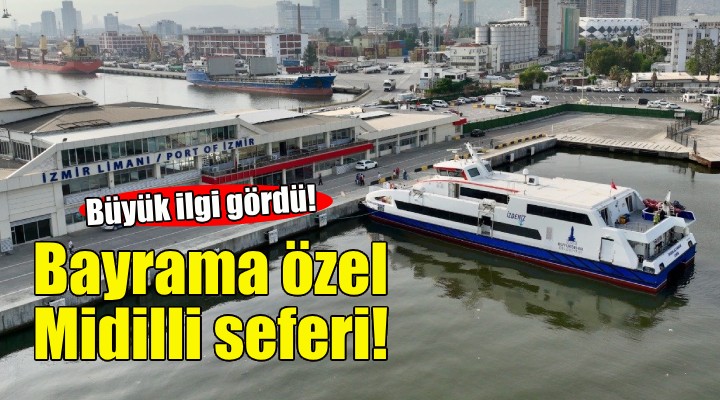 ?zmir Büyük?ehir Belediyesi ve ?ZDEN?Z A.?' nin deniz turizmini canland?rmak için ba?latt??? ?zmir-Midilli seferlerinin ilki Ramazan Bayram?'na özel programla ba?lad?. 3 May?s'ta ba?layacak düzenli seferler öncesi “Bayramda Rotam?z Midilli” slogan?yla iki sefer düzenlendi. Tatilini Midilli’de geçirmek isteyen yurtta?lar?n kap?da vize uygulamas?n?n da ba?lamas?yla büyük ilgi gösterdi?i bayram seferinin ilki Alsancak Liman?’ndan yüksek h?zl? yolcu gemisi ?hsan Alyanak ile bu sabah yap?ld?. 220 yolcusuyla Midilli'ye hareket eden ?hsan Alyanak gemisinin ilk yolcular? Per?embe günü dönecek. Bir di?er sefer ise 12 Nisan Cuma günü yap?lacak. O seferin dönü? tarihi ise 14 Nisan olarak belirlendi.